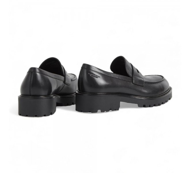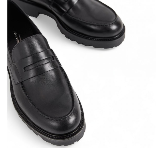 Modelul KENOVA de la Vagabond sunt loaferi masivi, care au devenit o adevărată icoană a stilului. Fabricat din piele neagră netedă, acesta reprezintă o combinație perfectă între confort și eleganță. Talpa groasă de 40 mm nu doar că asigură confort la mers, ci și subliniază designul modern. Acești loaferi se potrivesc ideal atât pentru ținute de zi cu zi, cât și pentru ocazii mai formale, făcându-i o alegere versatilă pentru orice situație.